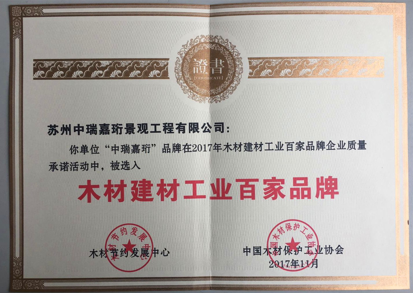 2013年在《中國木材保護工業協會》的組織下,我公司榮獲本年度防腐木企業評選《防腐木材企業十強》稱號。
